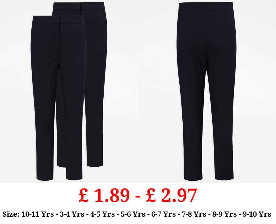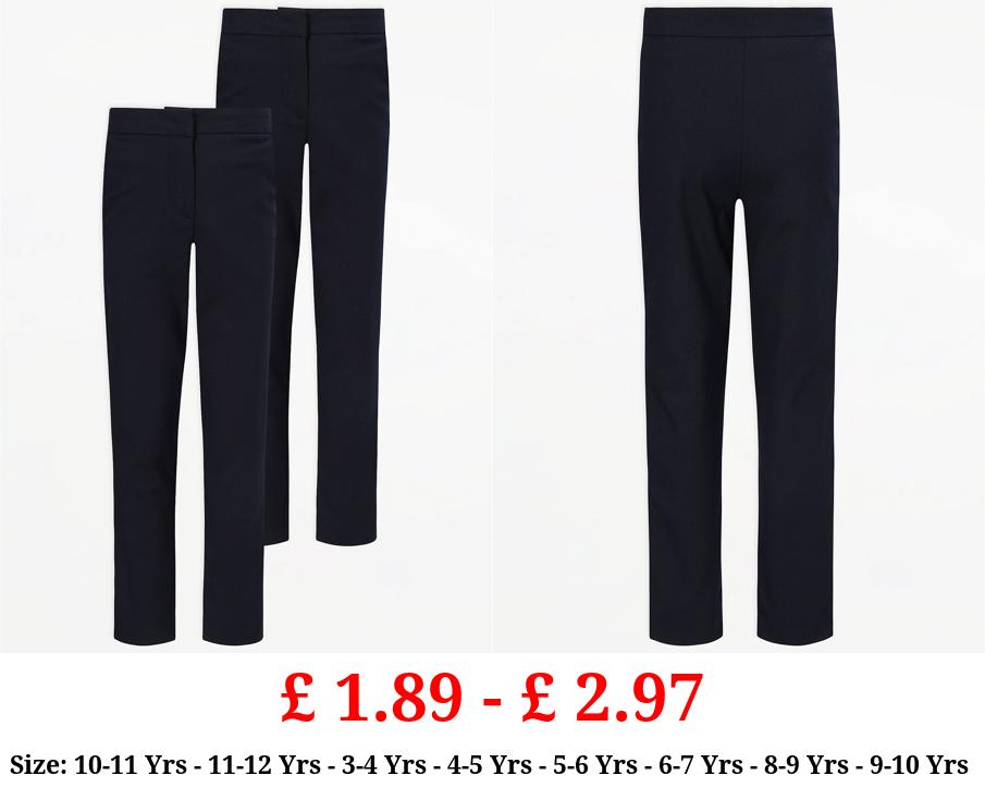 £ 1.89 - £ 2.97 Girls Navy Longer Length Slim Leg School Trousers 2 Pack