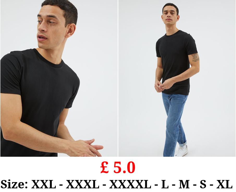 £ 5.0 Black Plain Muscle Fit T-Shirt