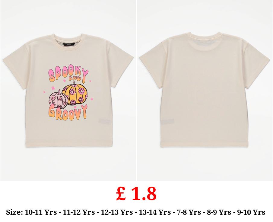 £ 1.8 Cream Spooky and Groovy Pumpkin T-Shirt