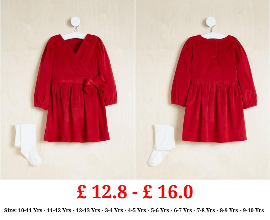 £ 12.8 - £ 16.0 Billie Faiers Red Velour Wrap Dress and Tights Outfit