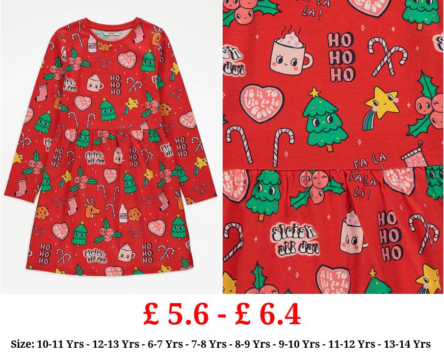 £ 4.0 - £ 5.6 Red Christmas Icons Jersey Dress