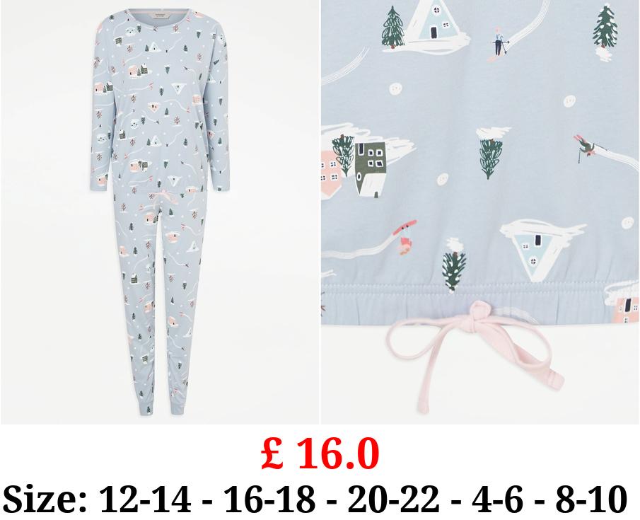 £ 16.0 Light Blue Winter Scene Pyjamas
