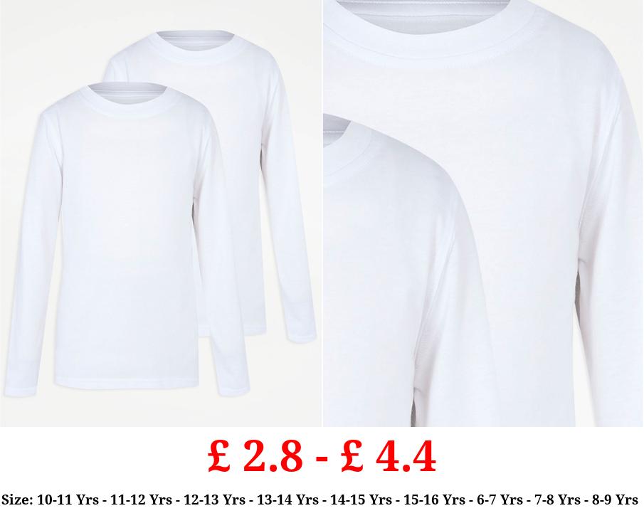 £ 2.8 - £ 4.4 Boys White Crew Neck School Long Sleeve T-Shirt 2 Pack