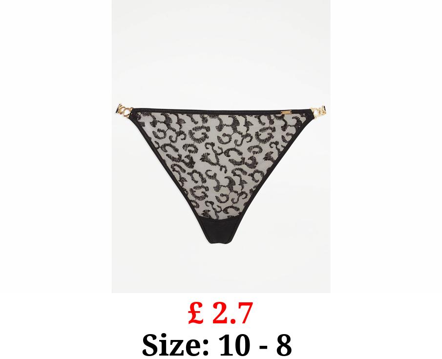£ 2.7 Entice Black Animal Embroidery Thong