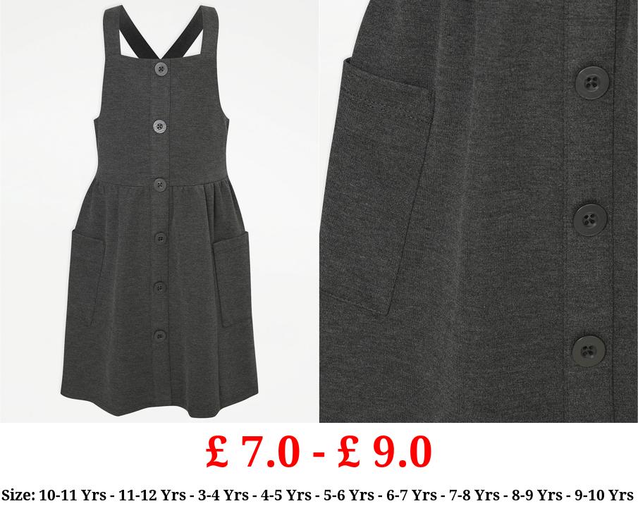 £ 7.0 - £ 9.0 Girls Grey Mock Button School Pinafore Dress