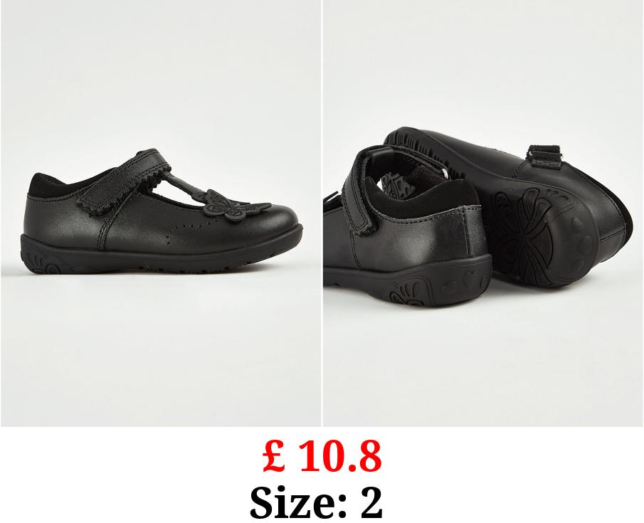 £ 10.8 Black Leather Butterfly T-Bar Shoes