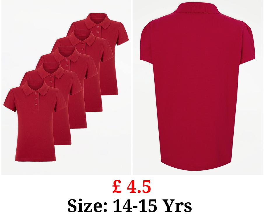 £ 4.5 Girls Red Scallop School Polo Shirt 5 Pack