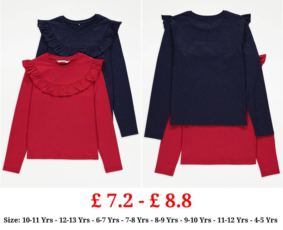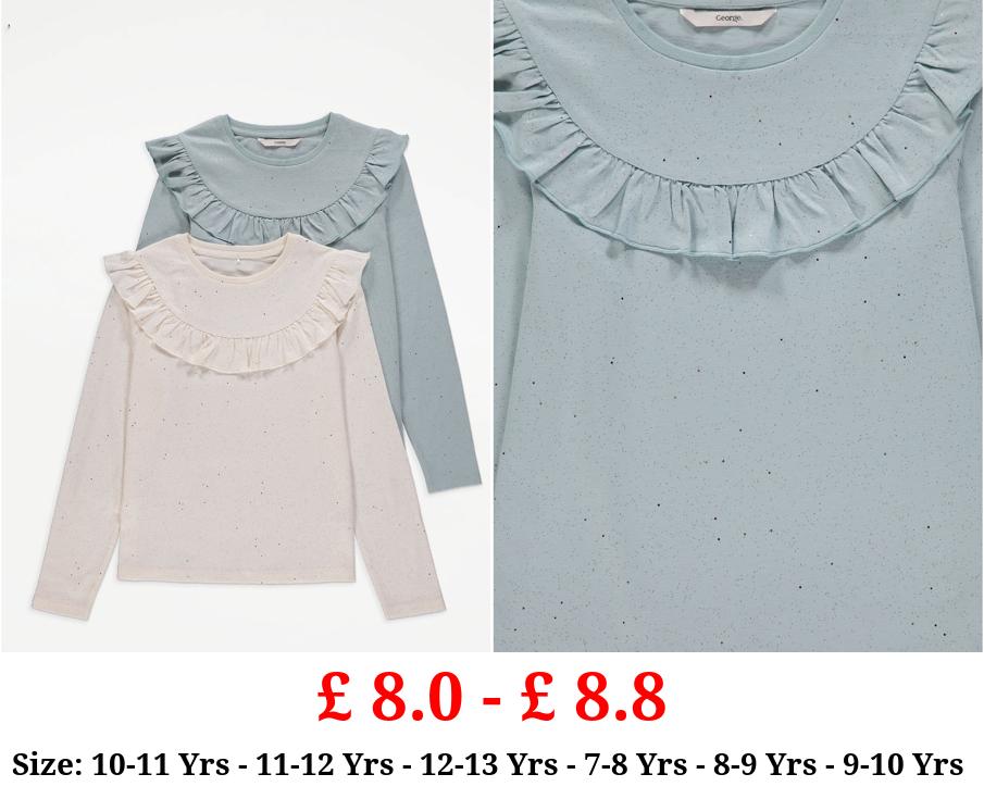 £ 7.2 - £ 8.8 Glitter Sparkle Long Sleeve Ruffle Tops 2 Pack