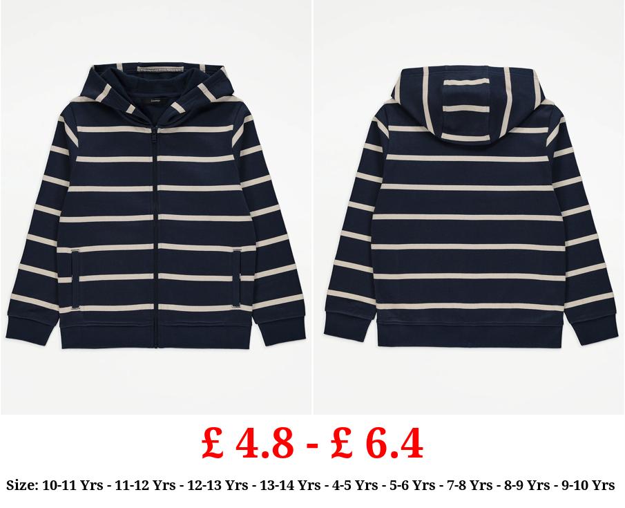 £ 4.8 - £ 6.4 Navy Striped Zip Up Hoodie