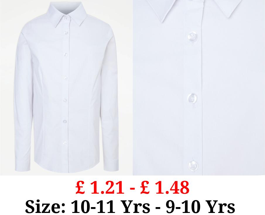 £ 2.7 - £ 6.5 Girls White Slim Fit Long Sleeve School Shirt 2 Pack