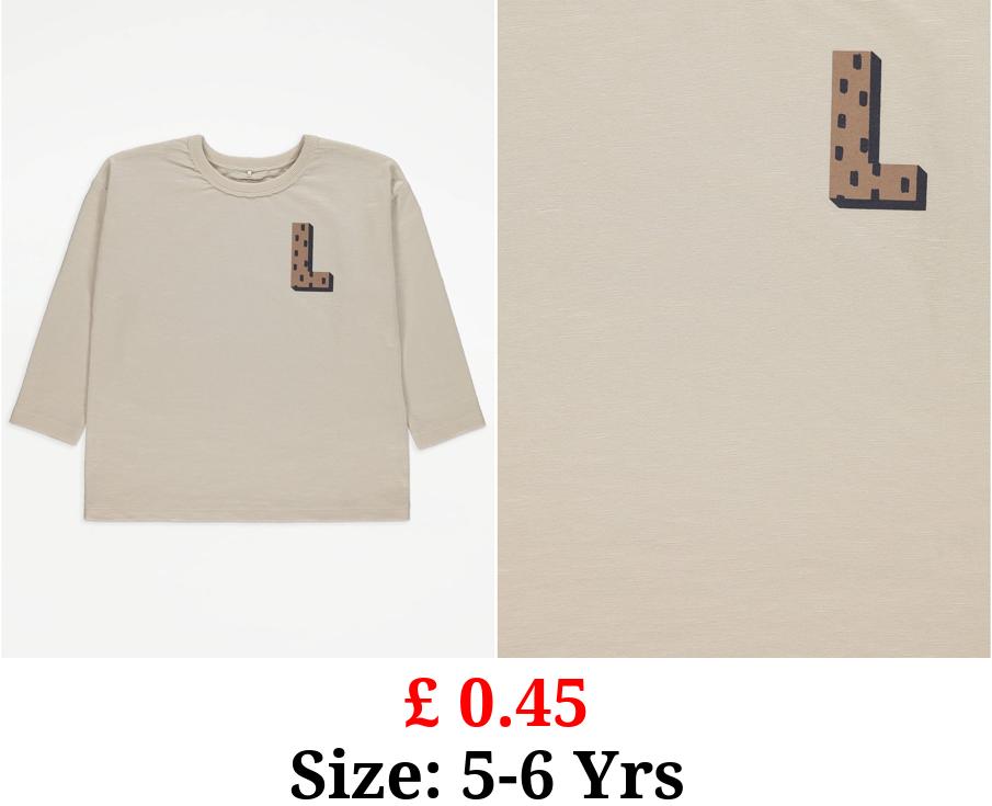 £ 0.45 Unisex Stone Alphabet Letter L Print Top