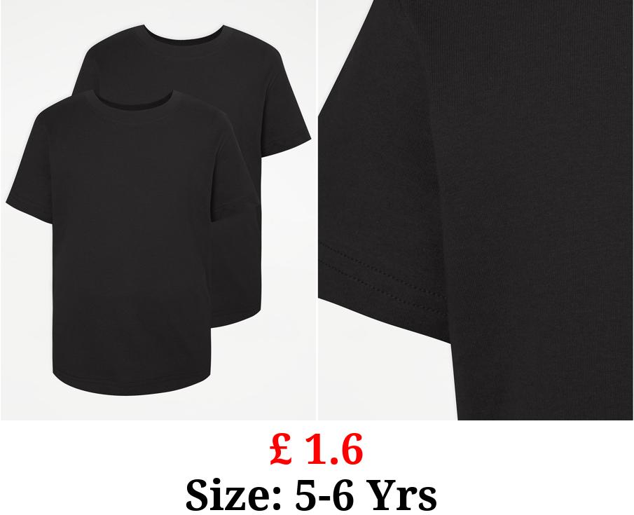 £ 1.6 Black Crew Neck School T-Shirt 2 Pack