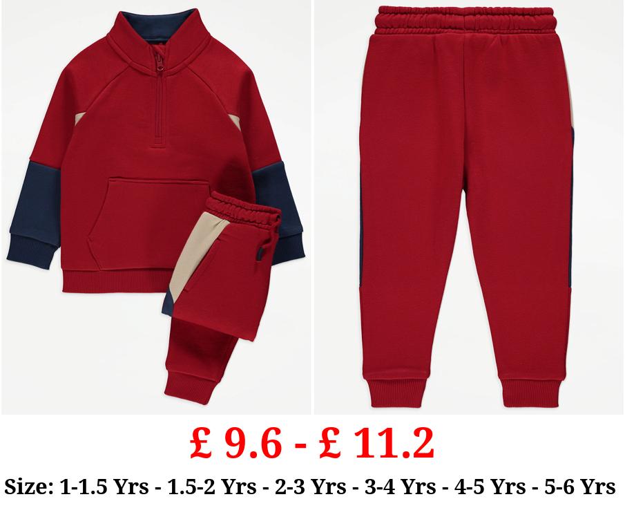 £ 9.6 - £ 11.2 Red Colour Block Zip Jumper and Joggers Outfit