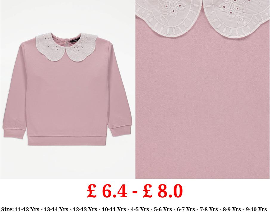 £ 6.4 - £ 8.0 Pink Broderie Collar Sweatshirt