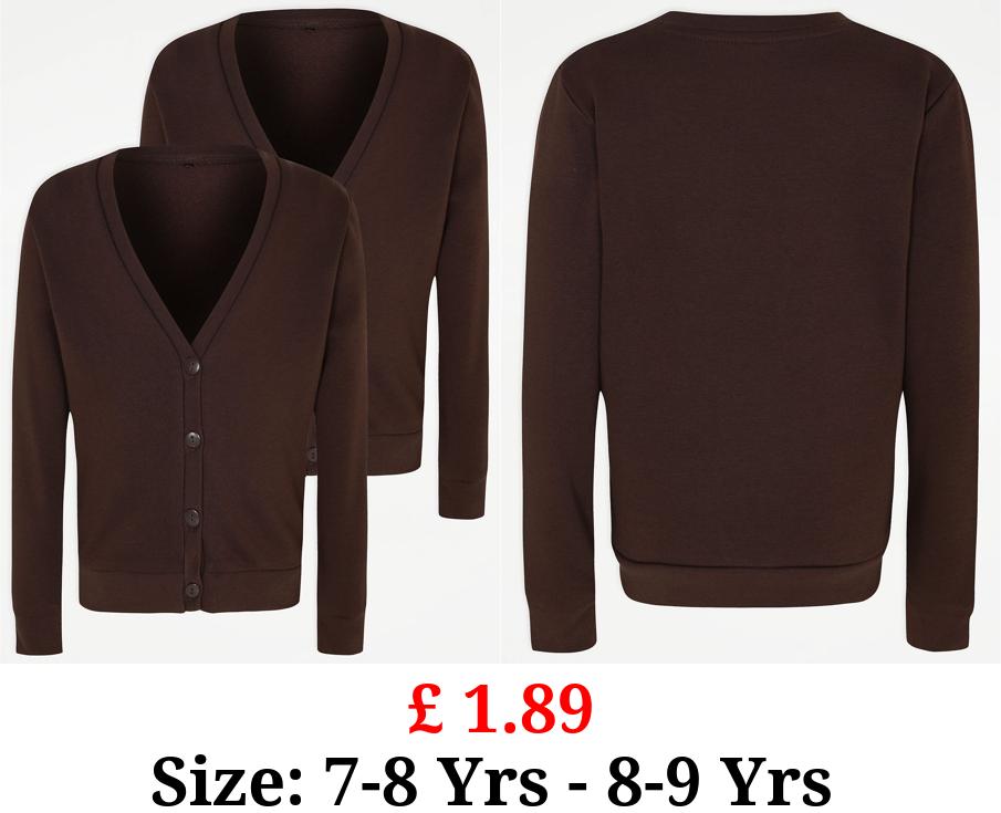 £ 1.89 Girls Brown Jersey School Cardigan 2 Pack