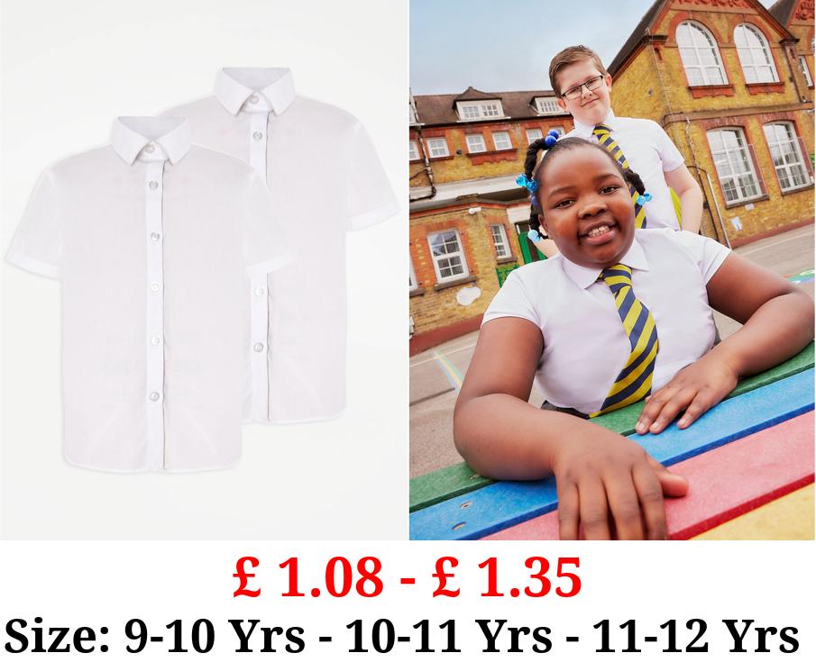 £ 1.08 - £ 1.35 Girls White Slim Fit Short Sleeve School Shirt 2 Pack