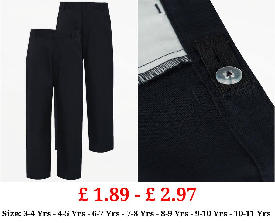 £ 1.89 - £ 2.97 Boys Navy Longer Length Regular Leg School Trouser 2 Pack
