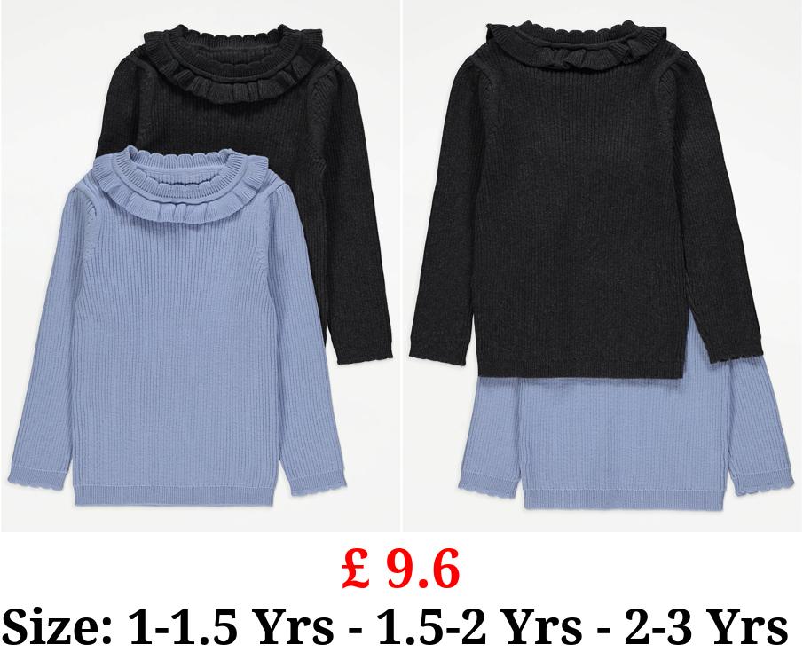 £ 9.6 Ribbed Frill Collar Knitted Jumpers 2 Pack