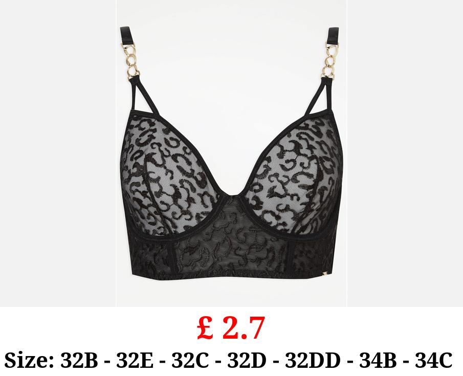 £ 2.7 Entice Black Animal Embroidery Longline Non Padded Bra