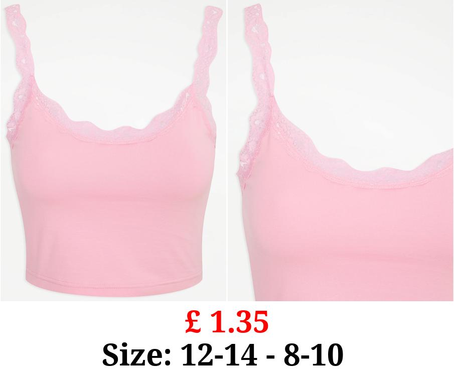 £ 1.35 Pink Lace Trim Cropped Pyjama Top