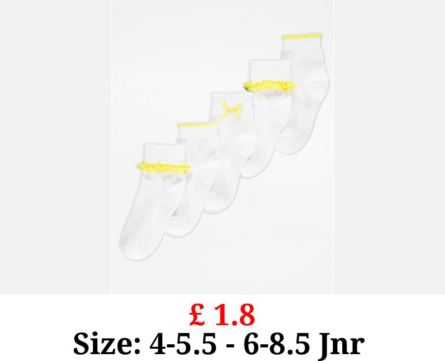 £ 1.8 Yellow Gingham Frill Cotton Rich Ankle Socks 5 Pack