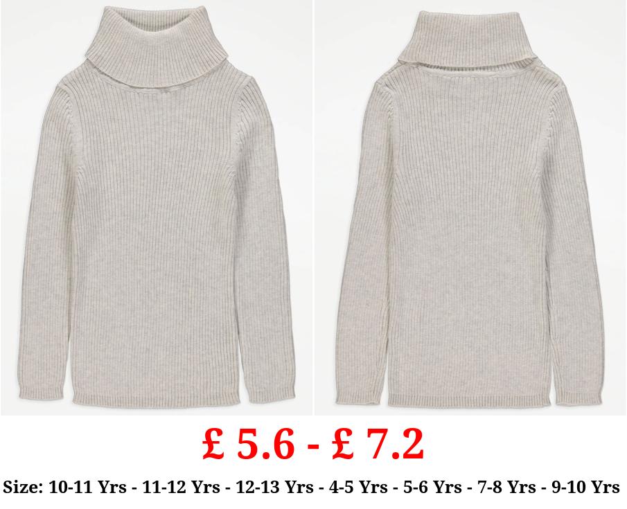 £ 5.6 - £ 7.2 Grey Ribbed Roll Neck Jumper