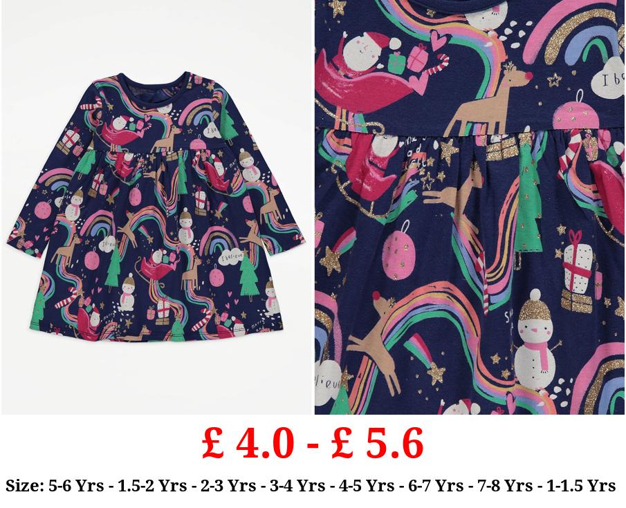 £ 4.0 - £ 5.6 Navy Christmas Print Long Sleeve Dress