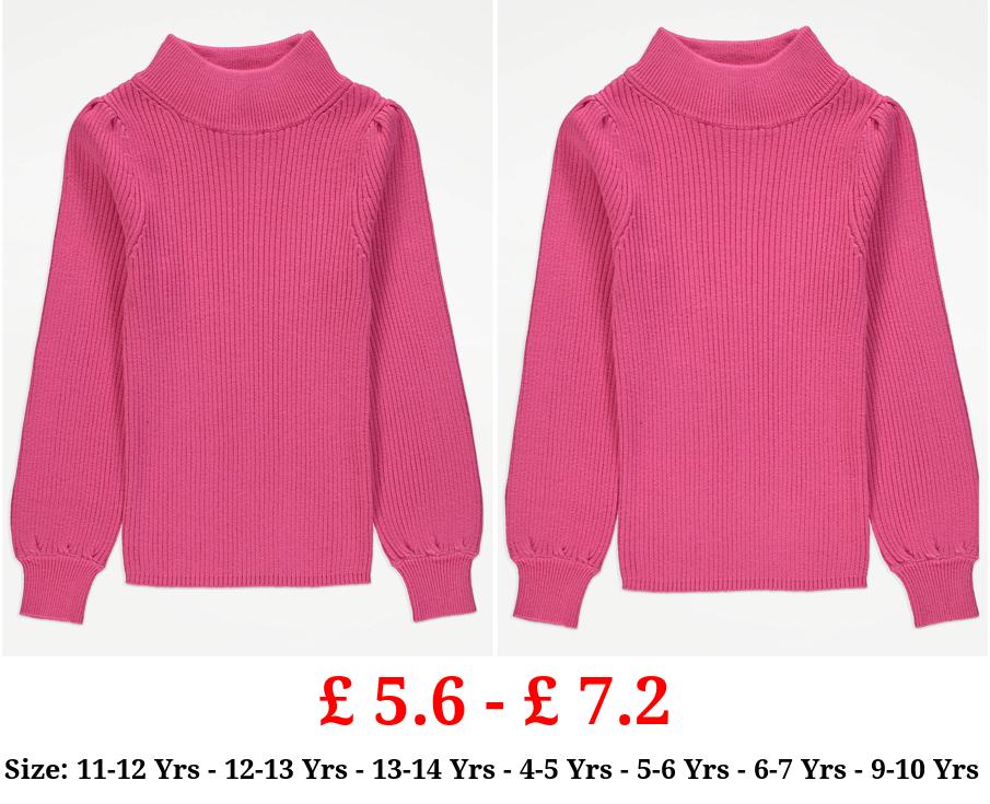 £ 5.6 - £ 7.2 Bright Pink Knitted Funnel Neck Jumper