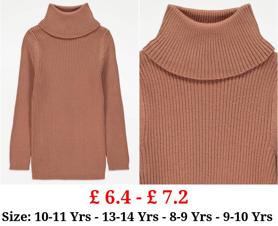 £ 6.4 - £ 7.2 Camel Ribbed Roll Neck Jumper