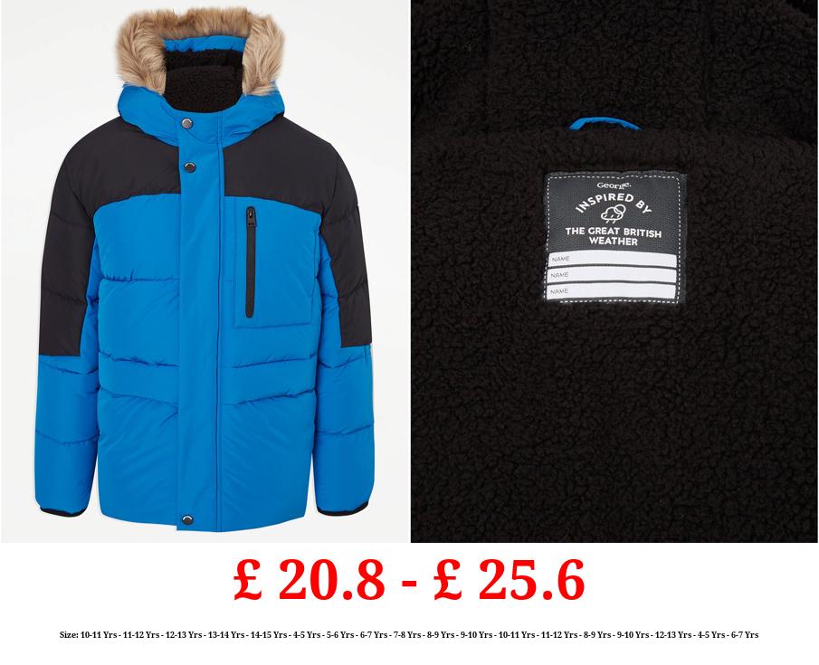 £ 20.8 - £ 25.6 Blue Faux Fur Trim Padded Coat