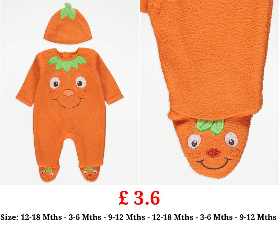 £ 3.6 Orange Pumpkin Fleece Sleepsuit and Hat
