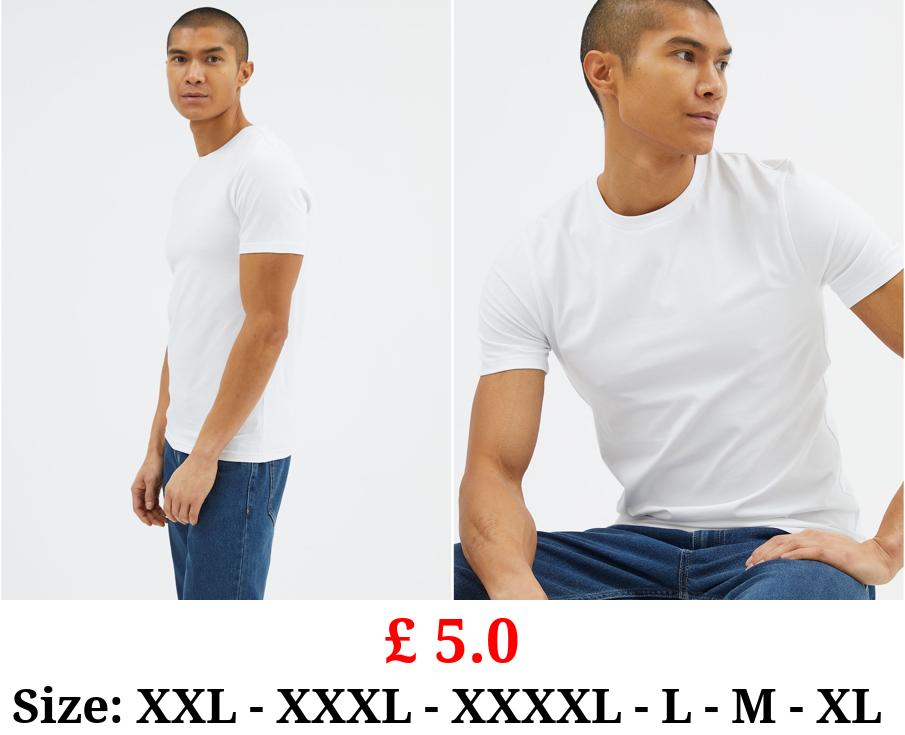 £ 5.0 White Plain Muscle Fit T-Shirt