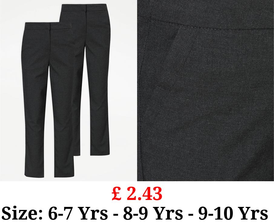 £ 2.43 Girls Grey Plus Fit Slim Leg School Trousers 2 Pack
