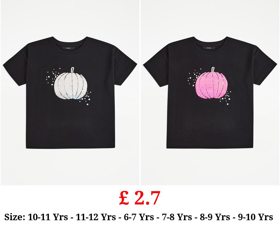 £ 2.7 Black Pumpkin Flippy Sequin Halloween T-Shirt