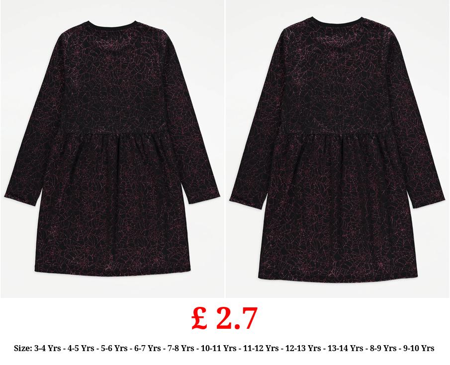 £ 2.7 Halloween Glitter Spider Web Print Long Sleeve Dress