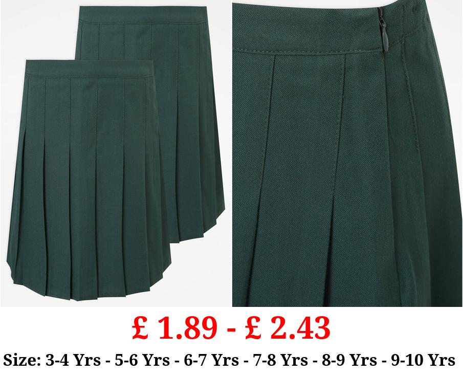 £ 1.89 - £ 2.43 Girls Bottle Green Permanent Pleats School Skirt 2 Pack