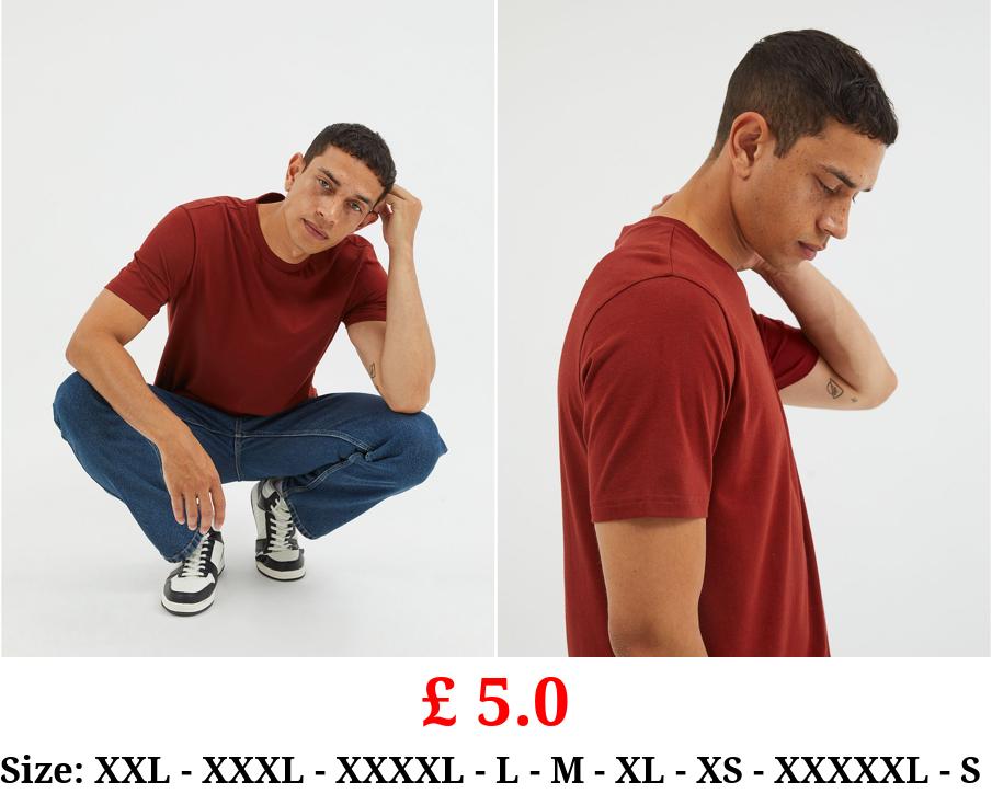 £ 5.0 Burgundy Crew Neck T-Shirt