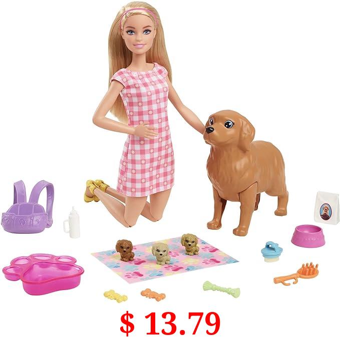 $ 13.79 Barbie Doll and Accessories Playset with Blonde Doll, Mommy Dog, 3 Puppies and 11 Pieces, Newborn Pups Set