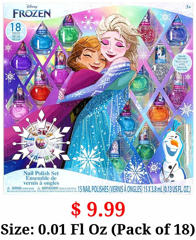 $ 9.99 Size: 0.01 Fl Oz (Pack of 18) Townley Girl Disney Frozen Non-Toxic Peel-Off Nail Polish Set with Shimmery and Opaque Colors with Nail Gems for Girls Ages 3+, Perfect for Parties, Sleepovers and Makeovers, 18 Pc Set