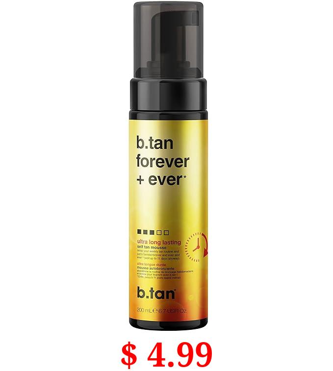 $ 4.99 b.tan Ultra Long Lasting Self Tanner | Forever & Ever - Lasts Up to 11 Days, Fast Self Tanning, 1 Hour Sunless Tanner Mousse, No Fake Tan Smell, No Added Nasties, Vegan, Cruelty Free, 6.7 Fl Oz
