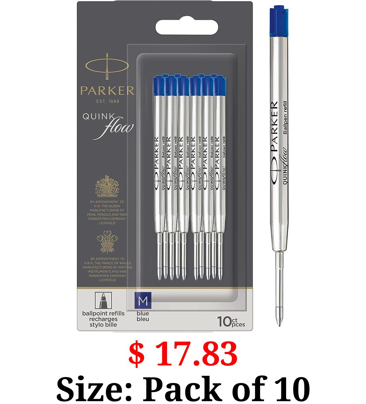 $ 17.83 Size: Pack of 10 Parker Ballpoint Pen Refills, Medium Point Ink Pen Refills, Blue QUINKflow Ink, Great Stocking Stuffer or Gift for Students, Holiday Teacher Gifts, 10 Count
