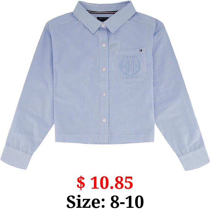 $ 10.85 Size: 8-10 Tommy Hilfiger Girls' Long Sleeve Boxy Fit Button Down, Cropped Shirt with Chest Pocket
