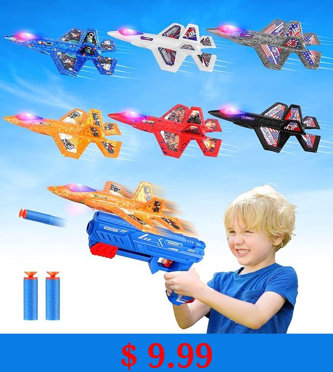 $ 9.99 6 Pack Airplane Launcher Toy,7.4" F-35 Foam LED Catapult Plane with 6 Stickers for Kids Outdoor Flying Toys Birthday Gifts for 4 5 6 7 8 9 10 12 Year Old Boys Girls