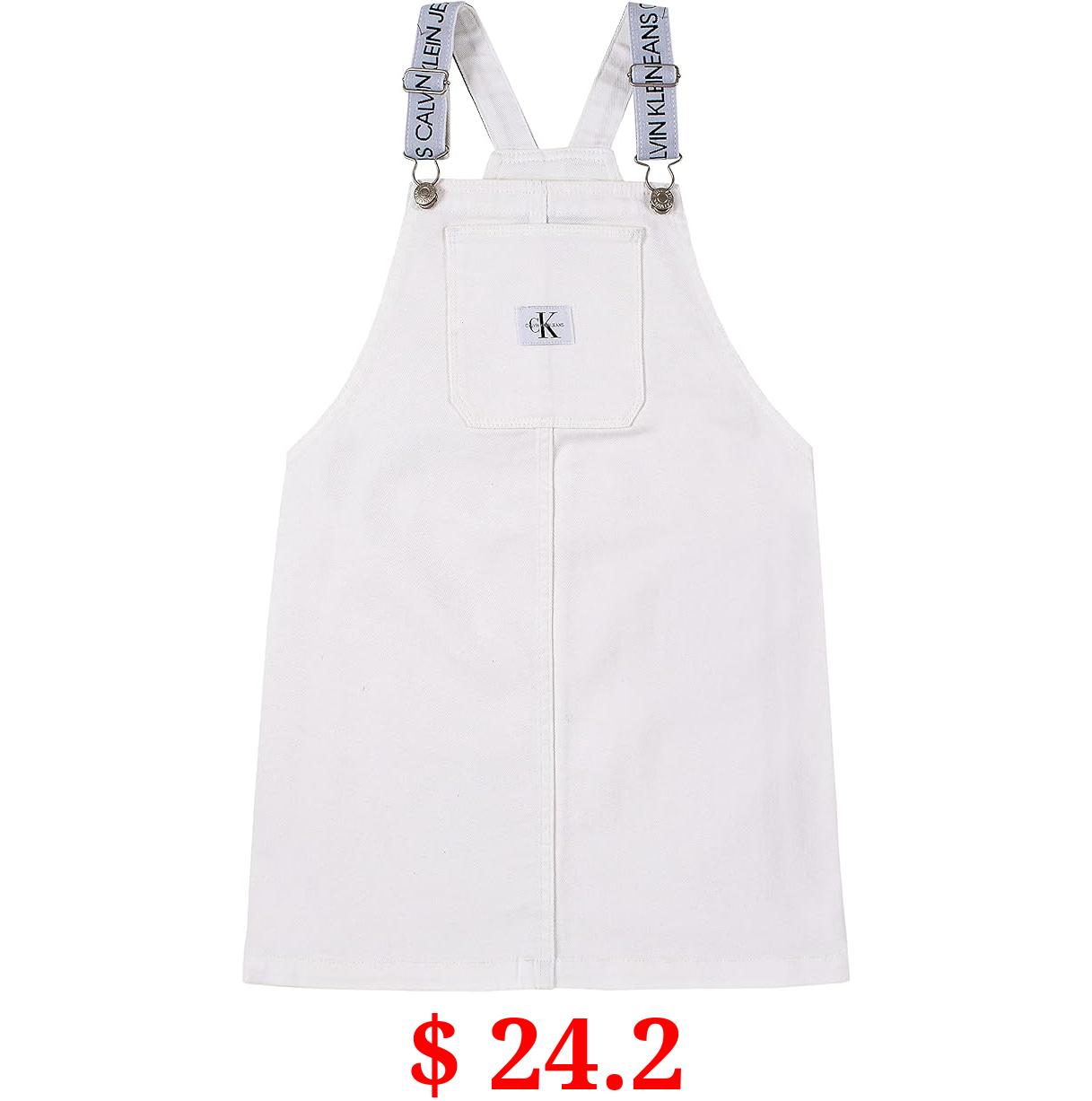 $ 24.2 Calvin Klein Girls' Denim Skirtall Dress, Overall Style with Hook & Loop Closure, Boyfriend Fit, Functional Front Pocket