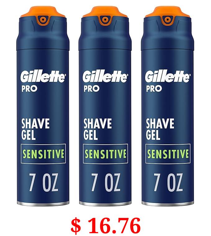 $ 16.76 Gillette PRO Shaving Gel For Men, Cools To Soothe Skin And Hydrates Facial Hair, Pack Of 3 - Total 21 Oz, ProGlide Sensitive 2 in 1 Shave Gel