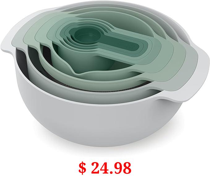 $ 24.98 Joseph Joseph Nest 9 Plus, 9 Piece Compact Food Preparation Set with Mixing Bowls, Measuring cups, Sieve and Colander, Editions Range, Polypropylene, Stainless steel, Sage Green