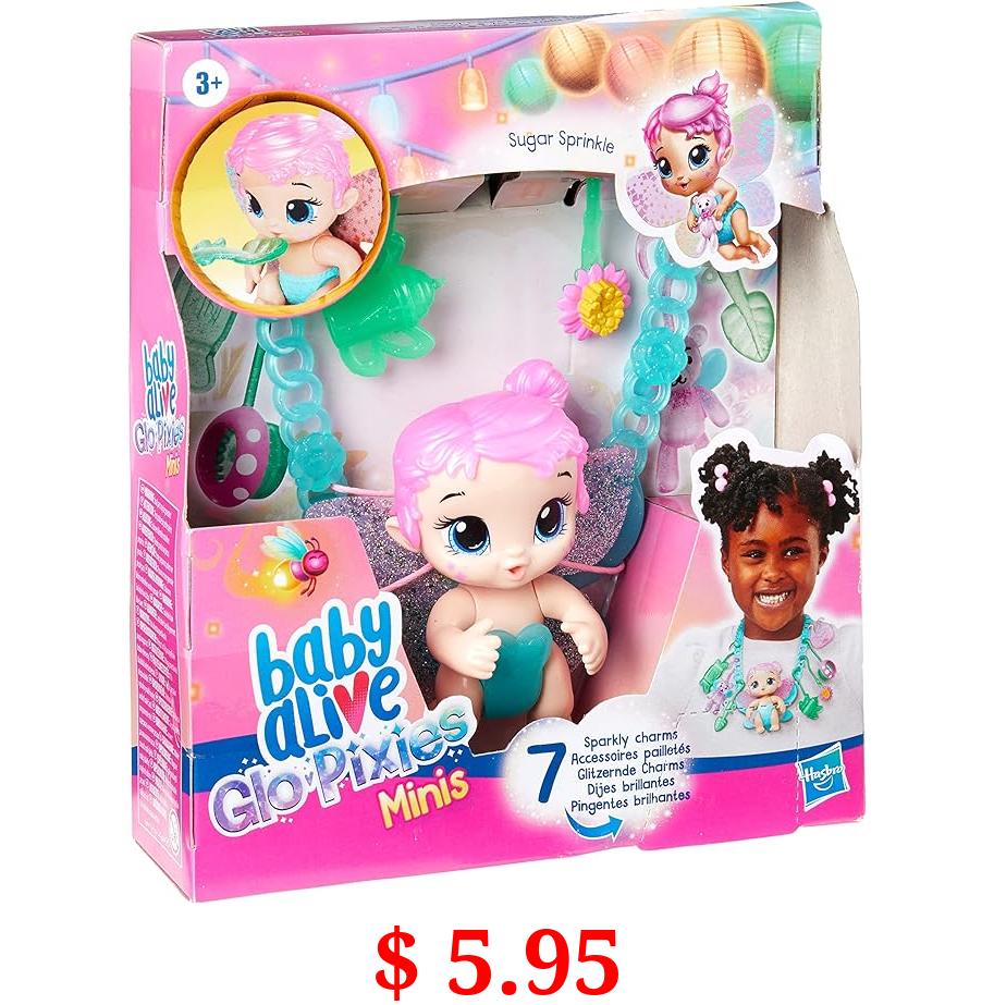 $ 5.95 Baby Alive Glo Pixies Minis Carry ‘n Care Necklace, Sugar Sprinkle, 3.75-Inch Pixie Doll Toy with Doll Carrier and Nurturing Charm Necklace