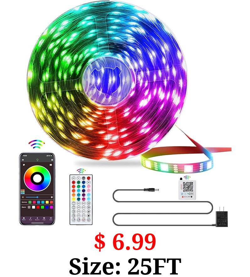 $ 6.99 Size: 25FT QZYL LED Lights for Bedroom, 25FT RGB LED Strip Lights with 44 Keys IR Remote, Smart LED Light Strip with Adhesive Backing Adjustable Brightness App Control for Bedroom Party Decoration