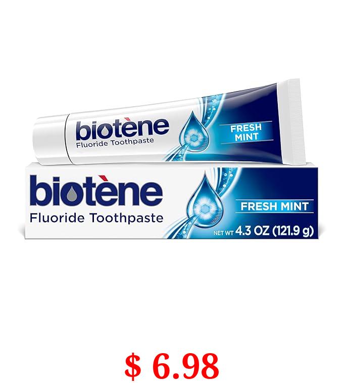 $ 6.98 biotène Fluoride Toothpaste for Dry Mouth Symptoms, Bad Breath Treatment and Cavity Prevention, Fresh Mint - 4.3 oz