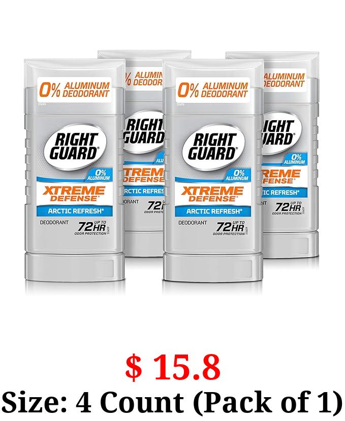 $ 15.8 Size: 4 Count (Pack of 1) Right Guard Xtreme Defense Aluminum-Free Deodorant Invisible Solid Stick, Arctic Refresh, 3 oz, 4 count (pack of 1)